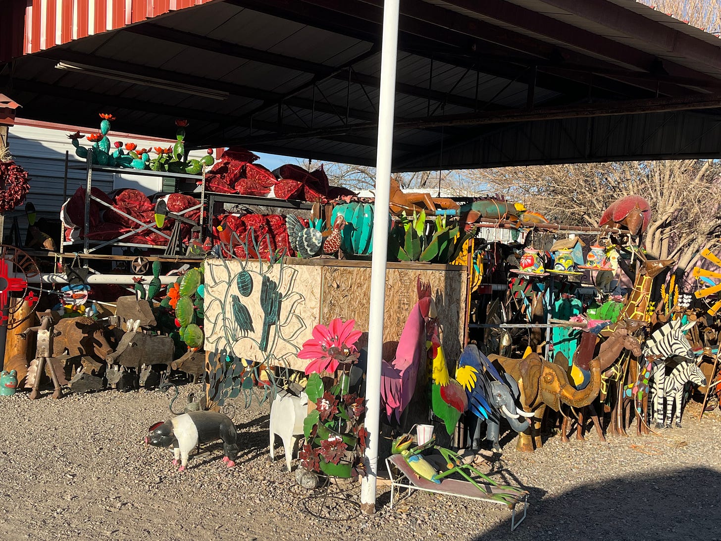 and spending an extra $110 on metal flower and rooster sculptures from Hatch, New Mexico (home of the famous green chile) for my new Santa Fe side-yard rock garden,
